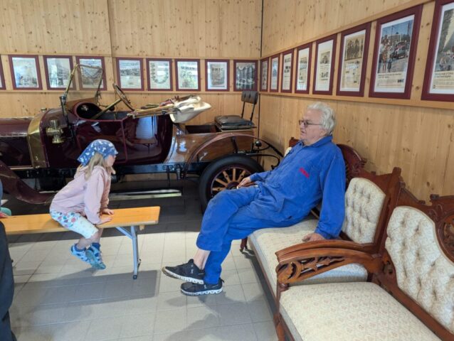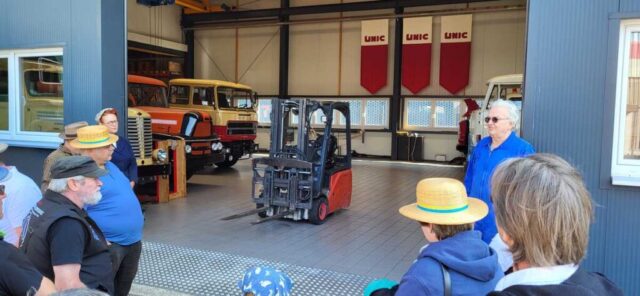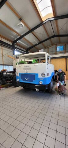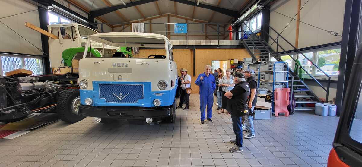 Moritz führte uns mit sichtbarer Leidenschaft durch seine Halle. Aktuell arbeitet er an mehreren historischen Lastwagen, die sich in unterschiedlichen Stadien der Restauration befinden. Seine Erklärungen waren informativ, verständlich und gespickt mit persönlichen Anekdoten – ein echtes Highlight für jeden Oldtimerfreund.