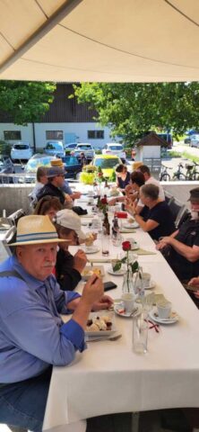 Am Sonntagmorgen trafen sich die Teilnehmer unseres Oldtimerclubs bereits um 08:30 Uhr zum gemeinsamen Start in einen besonderen Tag. Zur Begrüssung gab es frischen Kaffee und feine Gipfeli – ein gelungener Auftakt für unsere Ausfahrt. Die Organisation lag in den bewährten Händen von Chregu, der wie immer alles perfekt vorbereitet hatte.