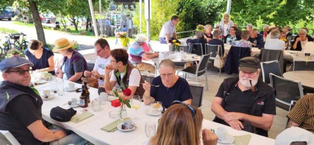 Nach der spannenden Führung lud uns Moritz zu einem gemütlichen Apéro ein – ein herzlicher Abschluss dieses Programmpunktes. Anschliessend fuhren wir weiter zum Sichternhof oberhalb von Liestal, wo wir gemeinsam ein feines Mittagessen geniessen konnten. Die entspannte Atmosphäre, die schöne Terrasse und das gute Essen rundeten den Besuch perfekt ab.